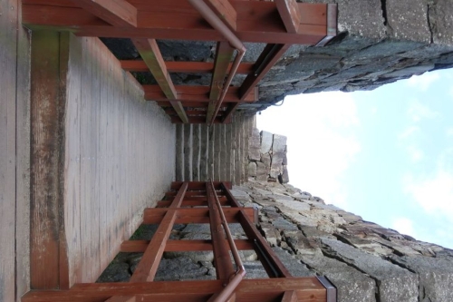 這是從本丸登上天守台的樓梯。天守台指的是日本城堡內最高的建築──天守(天守閣)的石製底座,天守是指揮與防禦的重地。雖然被稱為天守台,福岡城到底有沒有天守至今仍被議論著。