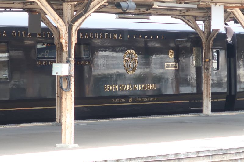 從博多前往吉野里的路上會在鳥栖 (とす,Tosu)換車,我們正好遇到JR九州推出的環島觀光列車七星列車,果然是非常的華麗與壯觀。