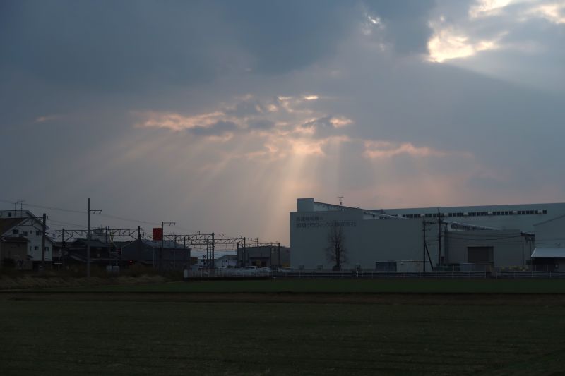 在往電車站回程的路上,我們遇見了白鷺鷥,真的是如宜蘭一般的景象。此時天空也有耶穌光,是一個值得記錄下來的時刻。