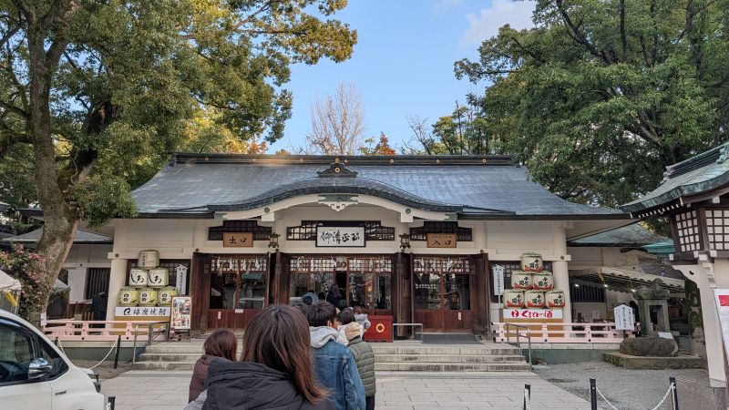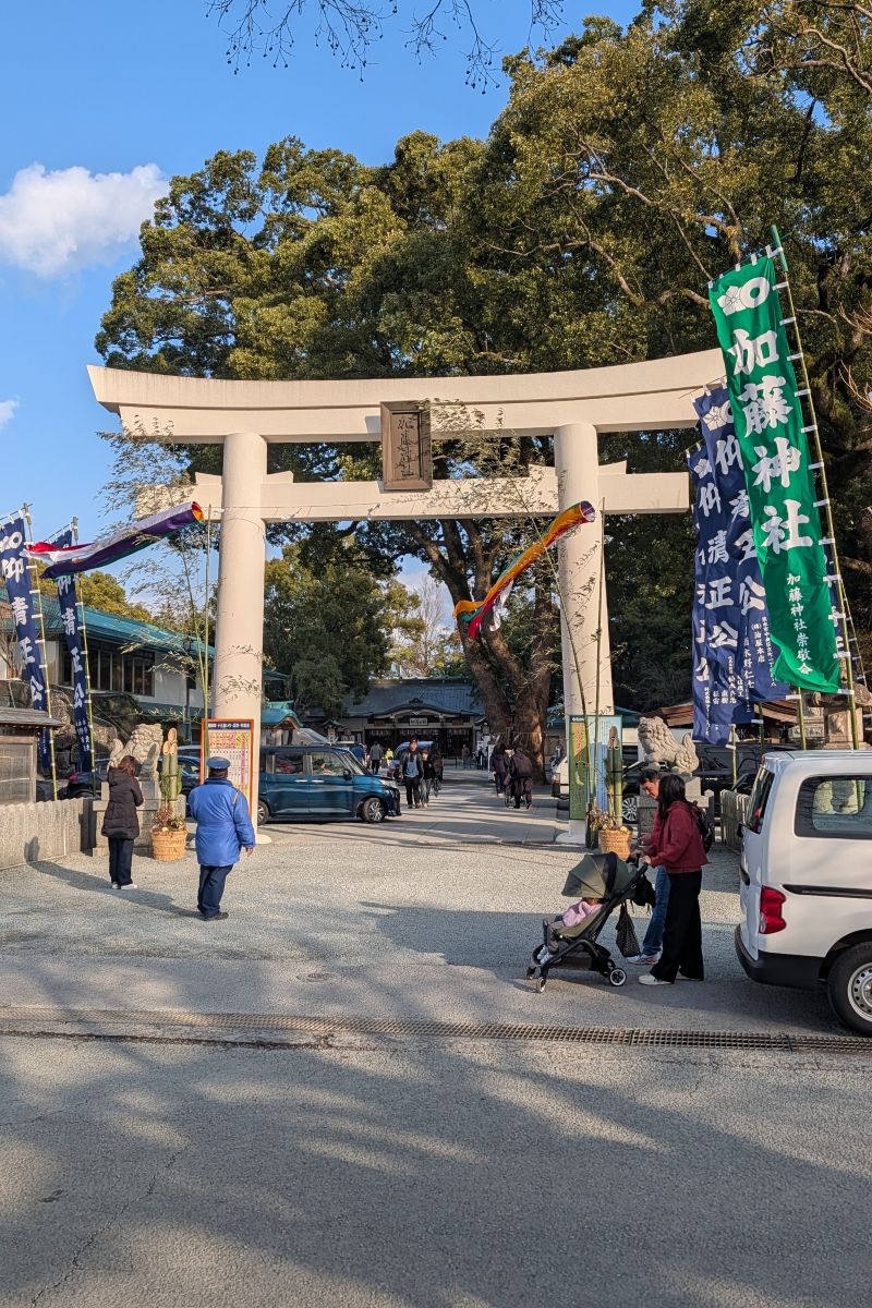 在熊本城旁的加藤神社,紀念熊本城建造者加藤清正(主祭神)。神社裡似乎也有停車場與休憩販賣部的功能。