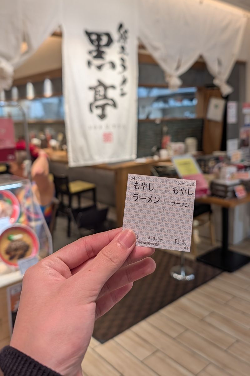 熊本拉麵主打中粗麵,配料木耳、海苔、蔥花(愈說愈發覺得像臺式拉麵)。黑亭是熊本拉麵的代表之一,來熊本可以嘗試看看。(熊本其實還有很多特產如馬肉刺身等,吃拉麵是我們在熊本時間不多,多重考慮後的選擇)