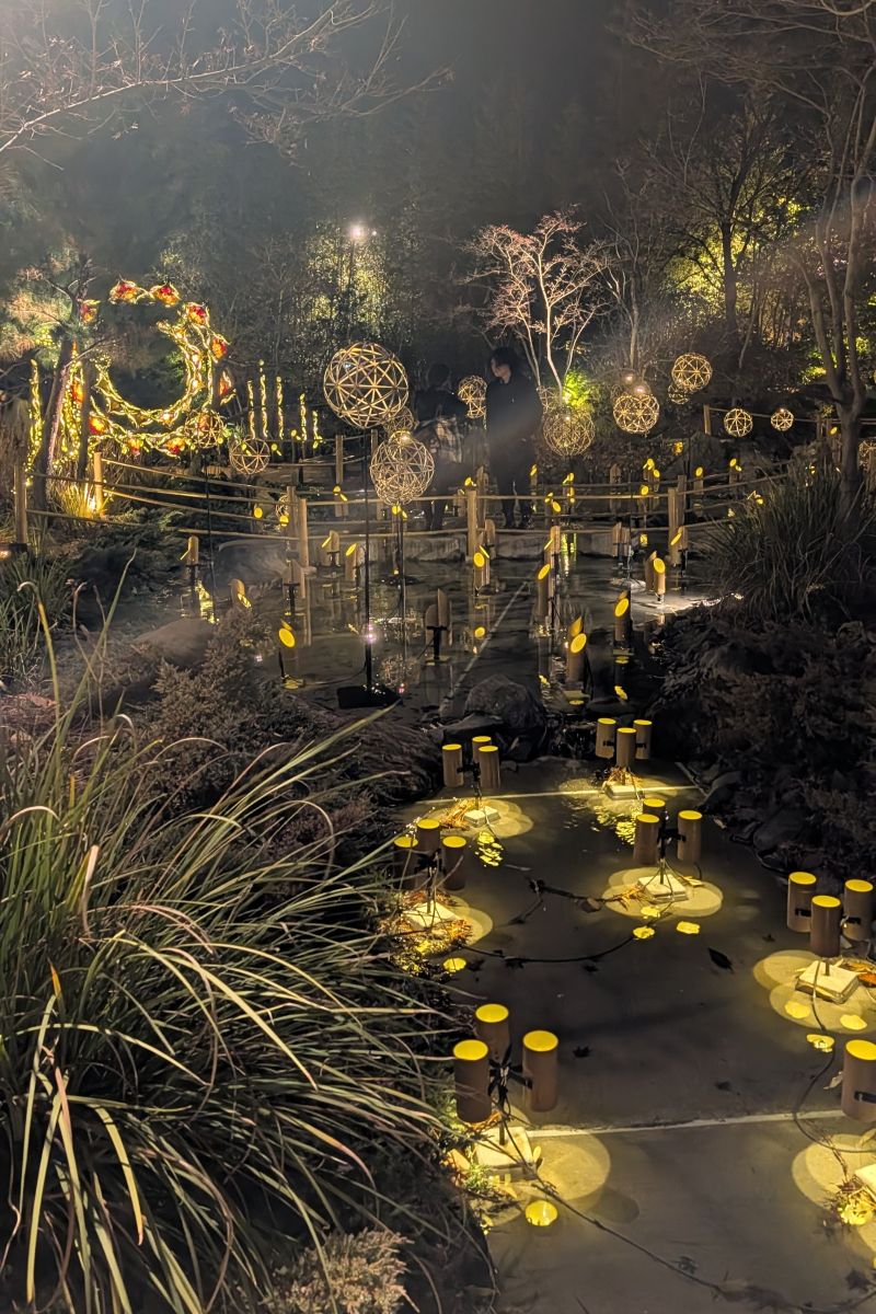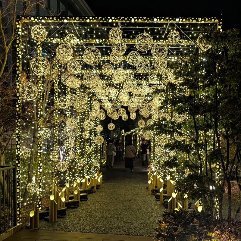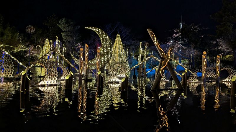 かぐや姫の光る庭的直譯為輝夜姬的發光花園。是展覽者使用簡單的竹筒與燈光所製作的藝術園區。展覽舉辦在SAKURA MACHI的頂樓天臺。
