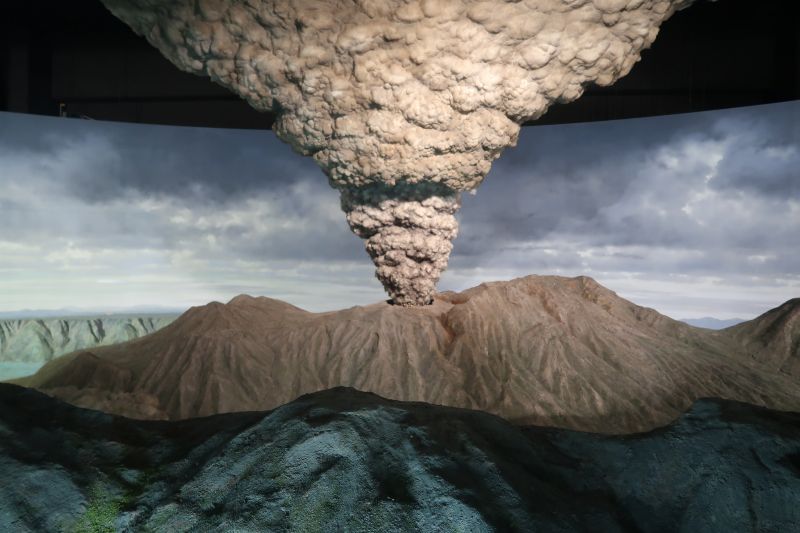 使用機關讓模型移動展示阿蘇這裡地形形成的過程(雖然火山氣體出現的方式有點抽象)