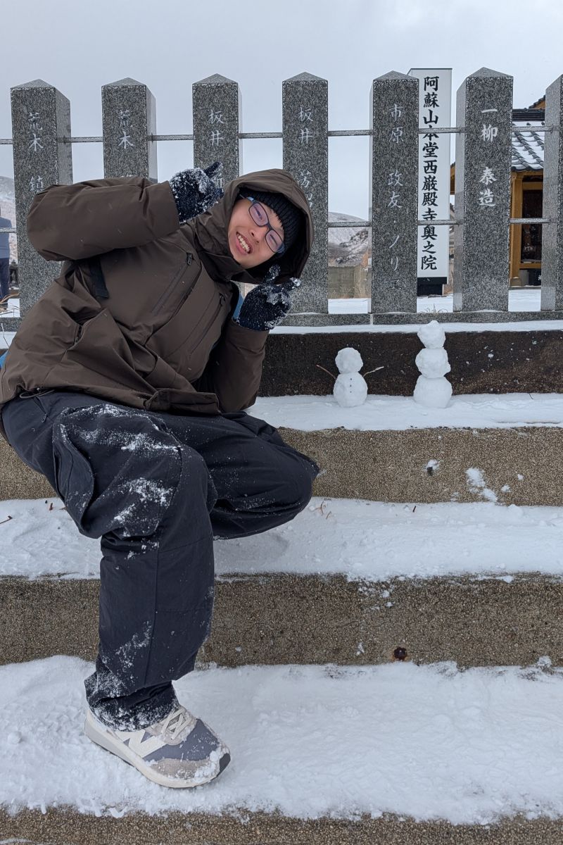 原本已經對看火山計畫死心了,沒想到還能在這裡用我人生看到第一場降雪來找回童心。因為在雪中玩得太開心,還差點趕不上巴士呢!