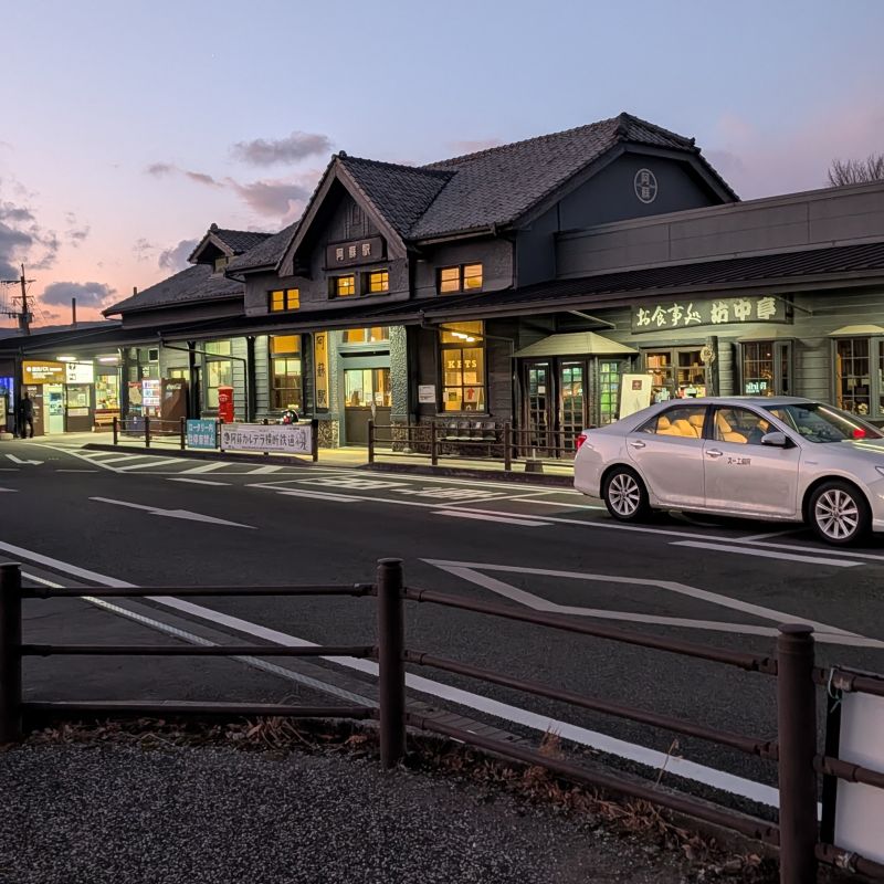 回到車站時天色漸漸黑了,車站內的暖爐也關閉了。在我們等飯店接駁車的這段時間感覺有些煎熬,但Willy記錄下了傍晚的阿蘇站。