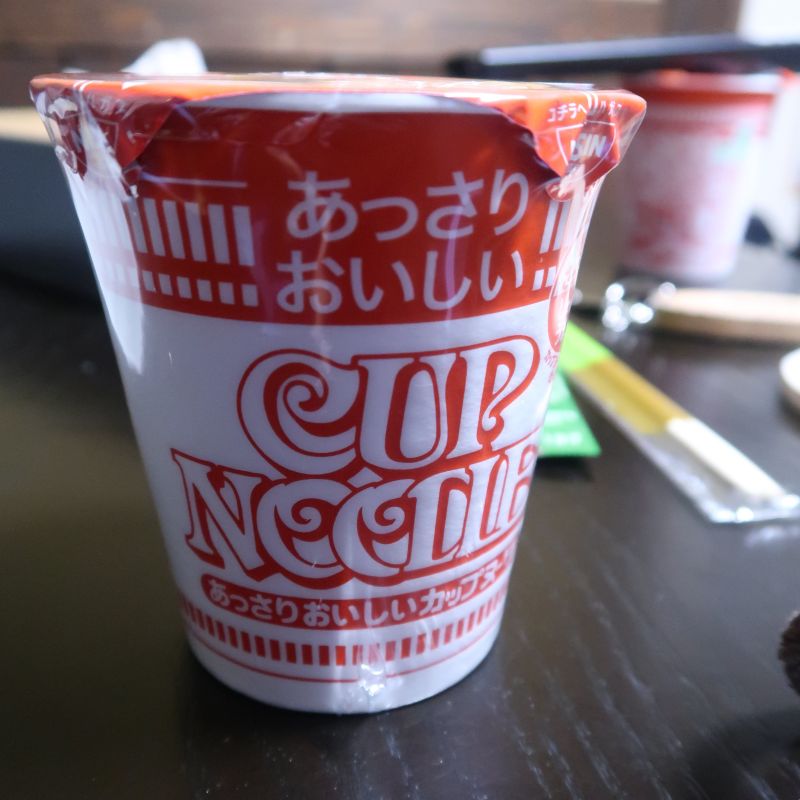 我們沒有訂飯店的晚餐,據說晚餐會是吃到飽的形式。別提價格的部分,感覺吃到飽跟溫泉區不是非常搭配,雖然網路上看起來的確是不錯吃。不過飯店還是有附一杯日清泡麵,至少不用憂慮在附近沒有便利商店與超市,餐廳沒有營業到晚上的黑川地區找不到東西吃了。(其實我們有在阿蘇的超市就先買了一些泡麵備用)