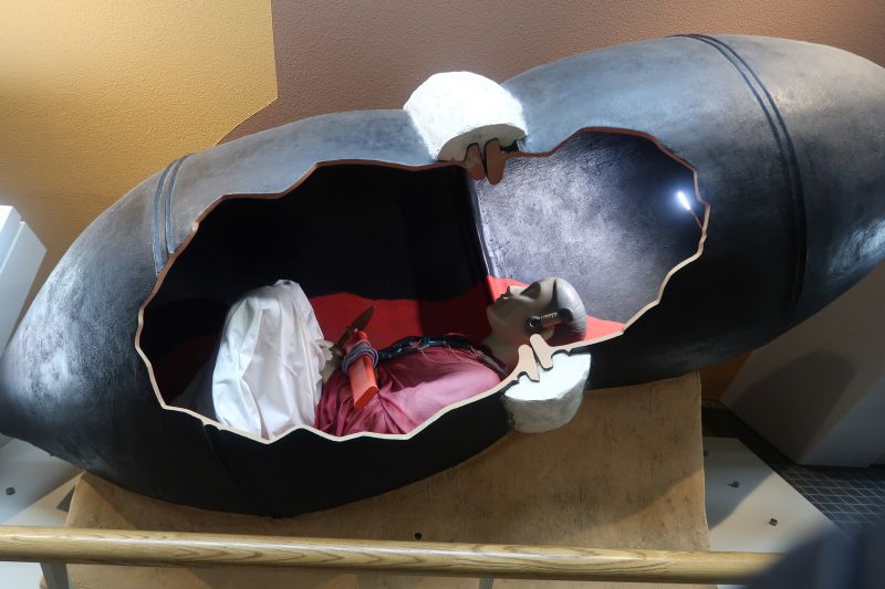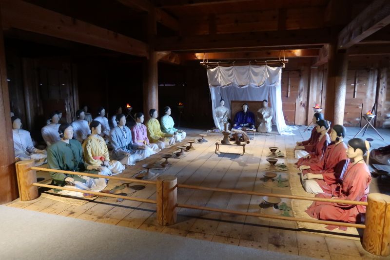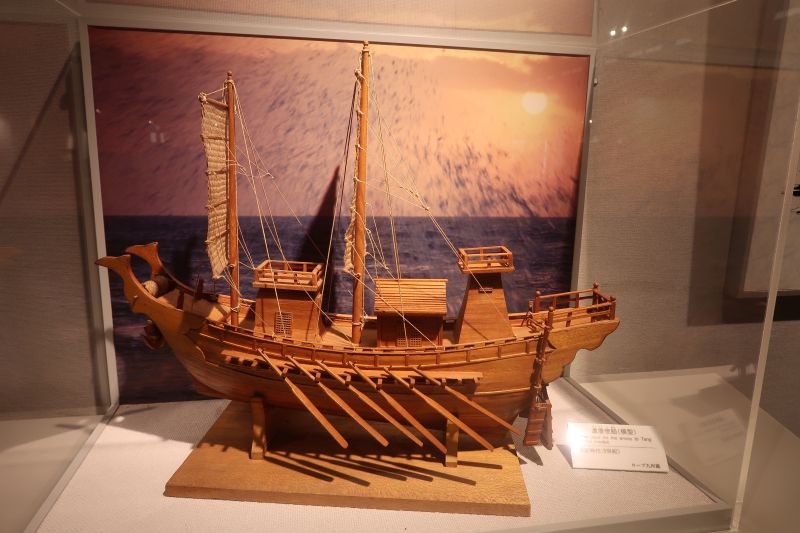 如果要蒐集日本百大名城的印章,福岡城的印章位於城堡山腳下的遊客中心,或是鴻臚館跡展示館都找的到。在鴻臚館跡展示館館內可以看到實際的考古現場,以及日本遣唐使的相關歷史。像是下面這艘船的模型,就是當時遣唐使所搭乘的木船。
