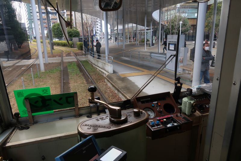 接下來我們要往飯店及熊本城方向移動。從車站出來,就會看到地面列車的月台。熊本市內的觀光依靠地面電車就可以完成許多了,因此我們選擇買24小時票。(原本以為地面電車在車站前會有售票處,我們到現場才跟著指示,線上用信用卡買票)