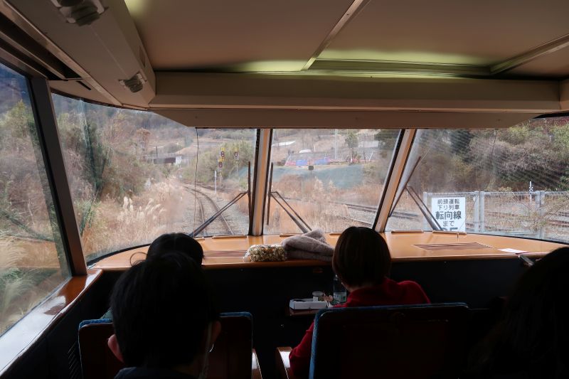 第一天在劃火車位的時候,剛好ASO BOY車頭車尾的全視野座位還有餘票,因此坐到了這個風景還不錯的位置。不過,這裡的座位就不能調整往後躺了。