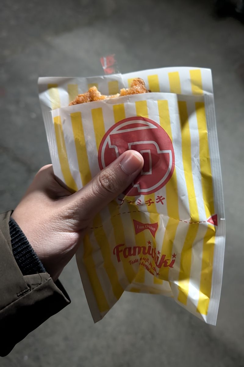 在我處理訂單的同時,Willy和B.C.買了FamilyMart的雞排。以前我偏好Lawson的炸雞,每天只要有Lawson都可以吃上一盒。這一次第一天也不例外買了一盒。Family的肉質比較鬆軟,但這次品嘗起來也是滿對胃口的。尤其B.C.買了一塊辣味的,在零下的戶外更有保持身體溫度的效果。