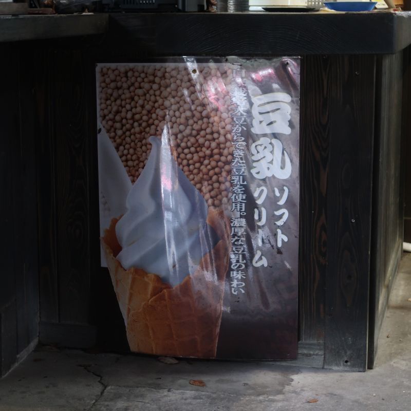 吃完午餐以後,我們共識是把手形的一次機會拿來吃伴手禮,畢竟已經泡了許多溫泉。我們選擇了這一家とうふ料理 吉祥。目前他們提供了三種甜品搭配選項,但導覽手冊上只有兩種,所以可能還是要實際拜訪一下店家。一進來庭院左手邊是正式店家,要兌換手形要到內側的小店舖。我選擇的是豆乳霜淇淋加一串糰子,而Willy與B.C.選擇兩個糰子與熱茶。雖然天氣冷,但是豆乳霜淇淋光聽起來就好吃啊~