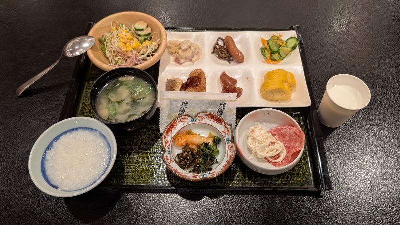 今天也是有飯店的早餐。非常中規中矩,就是日本飯店會有的自助餐水準,品項齊全,也是可以吃得很飽。