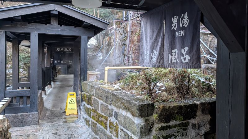 穴風呂與岩戶風呂入口處