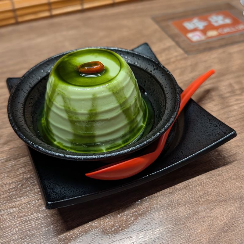 進到一蘭,Willy對一蘭所展現出的各種便利客人的細節很好奇,像是可以按服務鈴,請店員看已經刻好的小木板,提醒周圍用餐者降低音量。需要加麵時,只要將小鐵盤放在服務鈴上而不用按下去,店員就會知道可以加麵了。雖然我已經拜訪一蘭不少次,但是從新人的眼光看出去,真的是有一種全新的感受。Willy在一蘭也點了杏仁豆腐,這次有濃茶的調味。跟Willy借吃一口後,還是那個評價,奶味很濃。